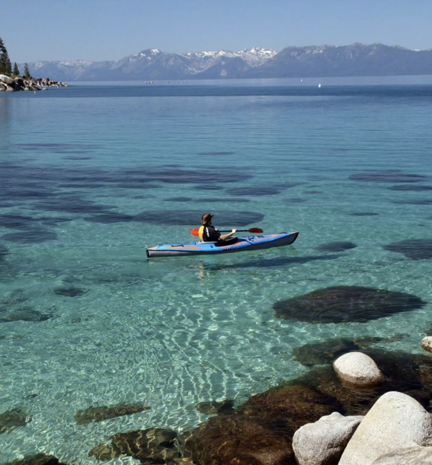 Opblæselig kajak til én person Længde når den er fyldt 396 cm, maksimal bredde 81 cm Maksimal belastningskapacitet 204 kg 9 luftkamre Løftehåndtag i agterstavn og bov Cover gummistrop Masser af opbevaringsplads