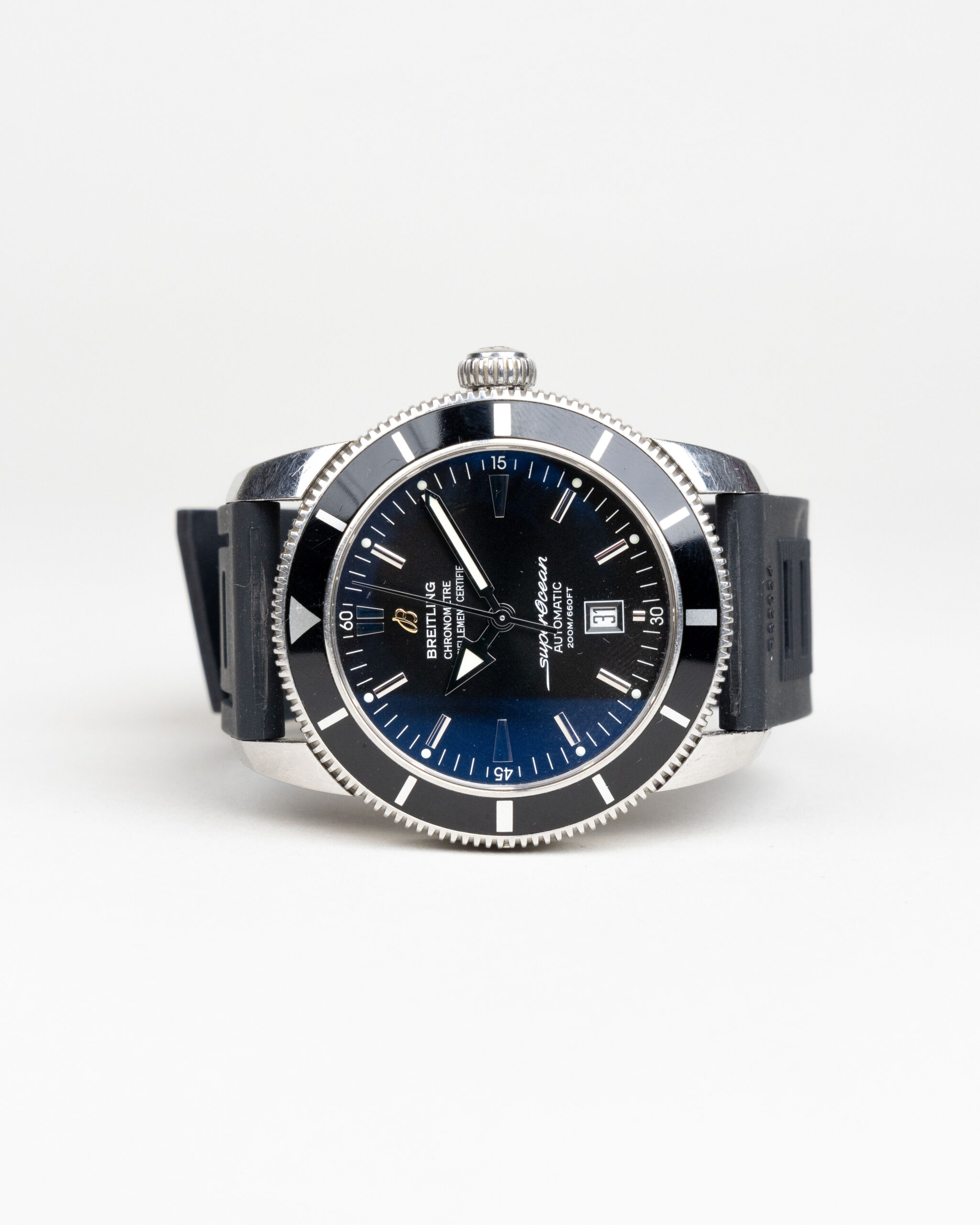 En robust og sporty dykkerklassiker fra Breitling. Superocean A17320 tilbyder imponerende vandtæthed, en kraftig stålkasse og en ren, funktionel skive med høj læsbarhed. Det automatiske Breitling Calibre 17-værk sikrer pålidelig præcision, mens den solide konstruktion gør uret velegnet til både daglig brug og eventyr under vandet. Et stærkt valg for dig, der ønsker et kvalitetsdykkerur med tydelig Breitling-DNA.