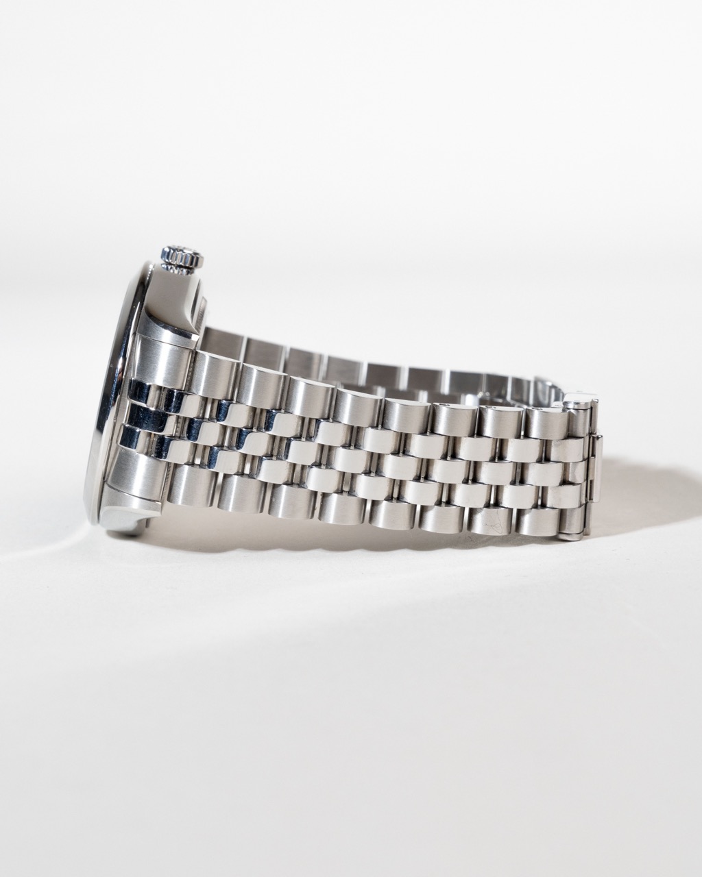 Et sofistikeret og moderne ur fra Tudors Royal-kollektion, hvor klassisk elegance møder teknisk præcision. Modellen har en smuk grå sunburst-skive. Det automatiske værk sikrer driftssikker ydeevne, mens den integrerede stållænke giver et elegant og harmonisk helhedsudtryk. Et alsidigt ur, perfekt til både hverdag og formelle lejligheder – ægte Tudor-kvalitet med luksuriøs finish.